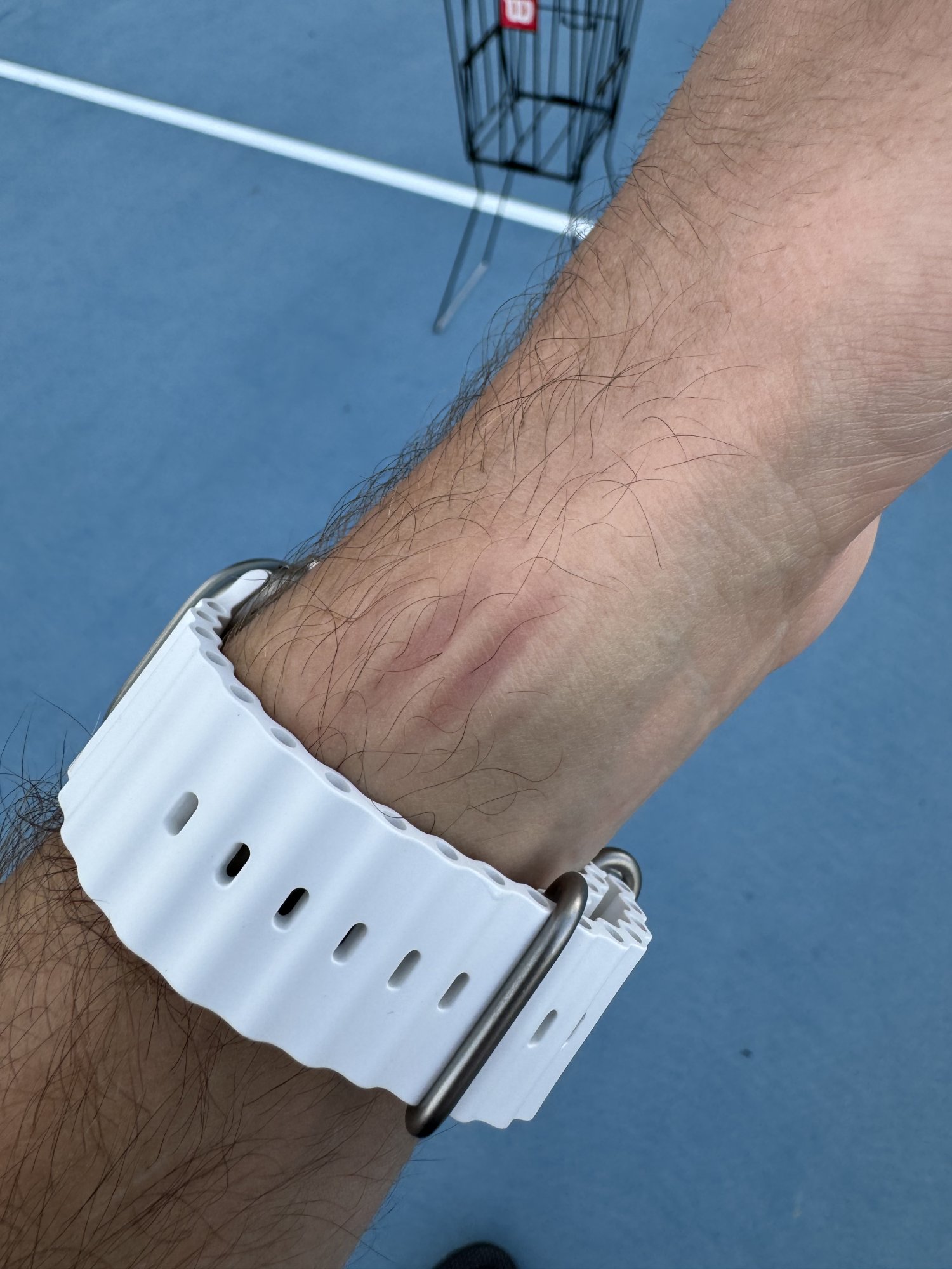 If I tighten my ocean band down by one more notch, like I do when I run on my treadmill, so the watch doesn't bounce around, then the marks will occur after a short while.