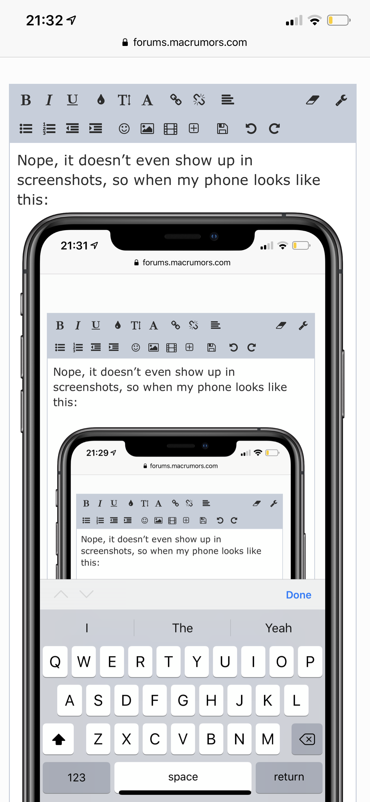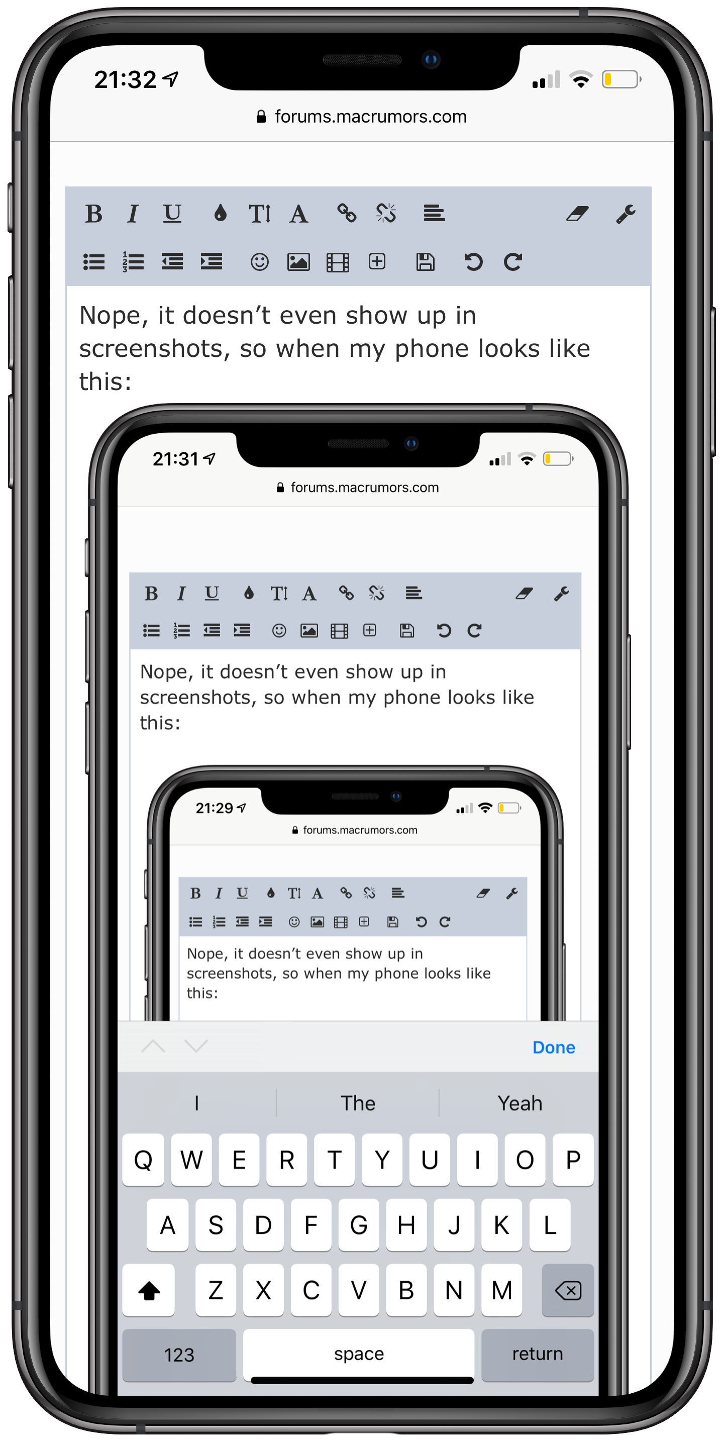 Nope, it doesn’t even show up in screenshots, so when my phone looks like this: