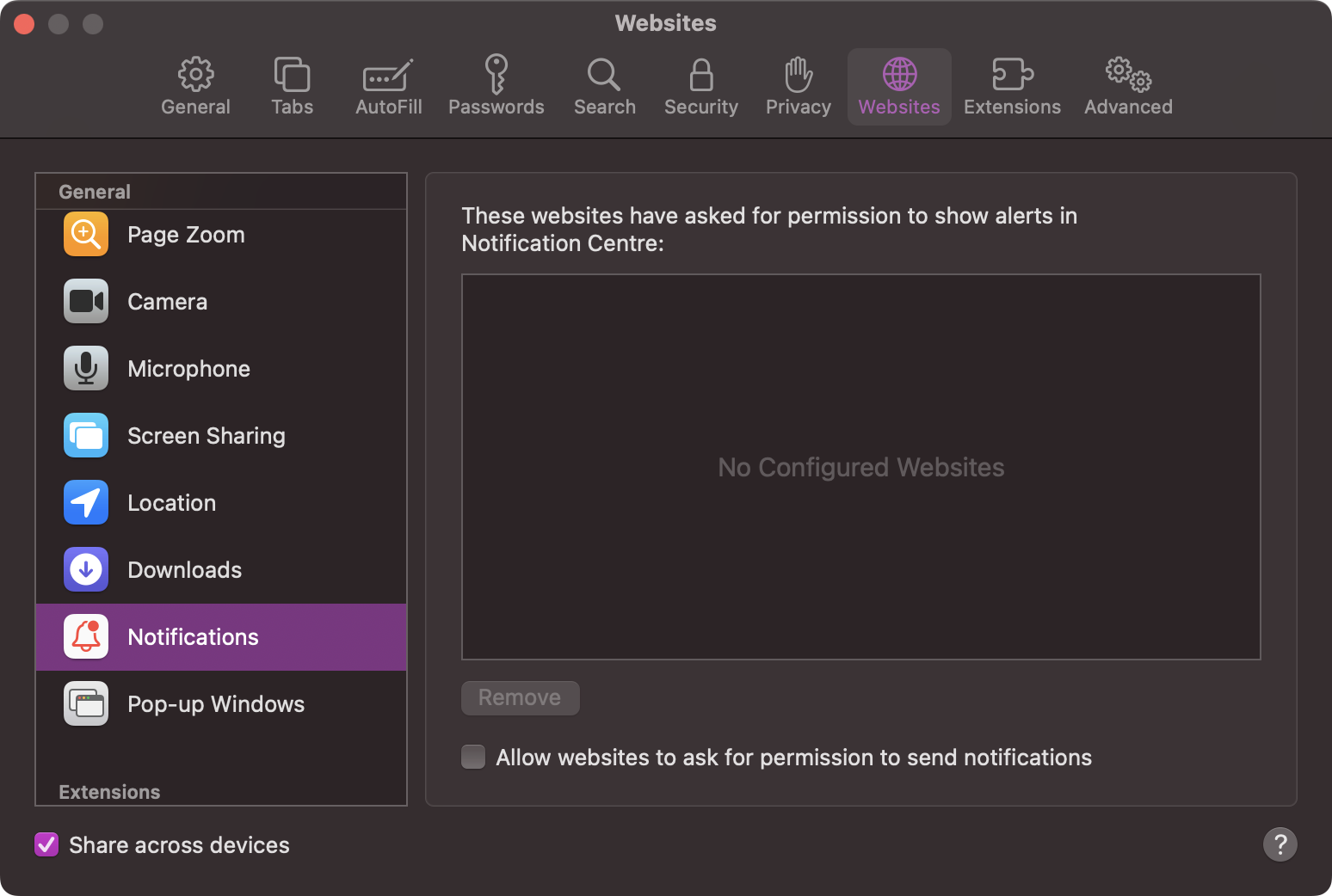 I switched off the ability for web sites to ask me to send me push notifications. Because I find them annoying. But MacRumors Forum asked me anyway and on every browser I use I have to say no which needs two click to do so. If you can't ask through the proper API for permission don't use another way. I think it is a rude behaviour. As I said, I switched it off for a reason.