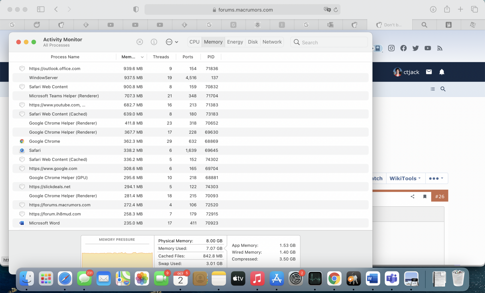 on 11.5 - bunch of word/excel/pdf, safari 20-30 tabs, MS Teams, Zoom.
