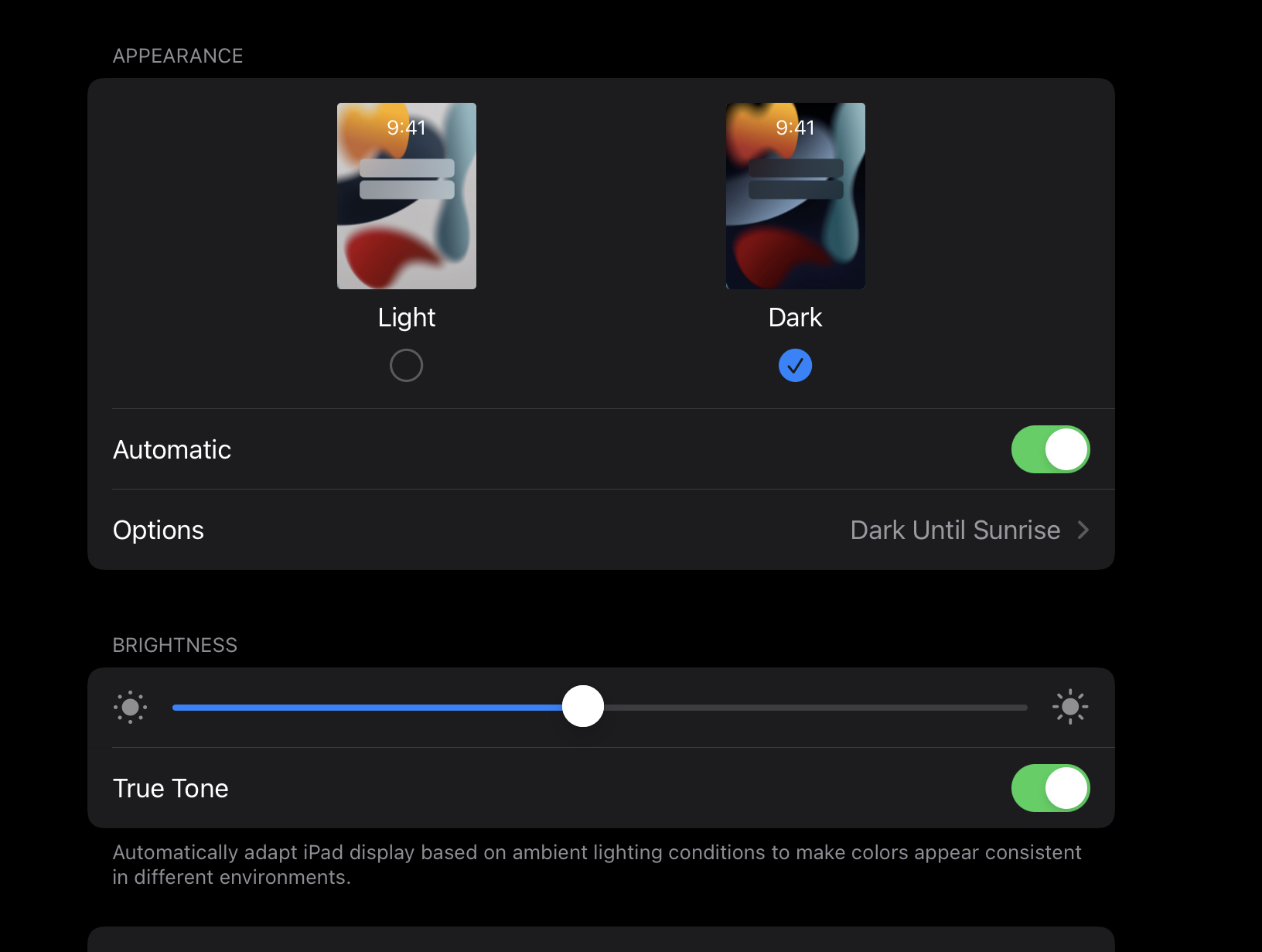 Got mine on auto as well, can’t use dark mode during the day, gives me anxiety lol.I have not looked at it for a long time but I have it on automatic so it can adjust to my local environment just always had it on (think it is either on or it always asks if you want on when you set up). But looking at the link in the above instructions I see this part that is helpful maybe for you in terms of making your screen the way you want it????