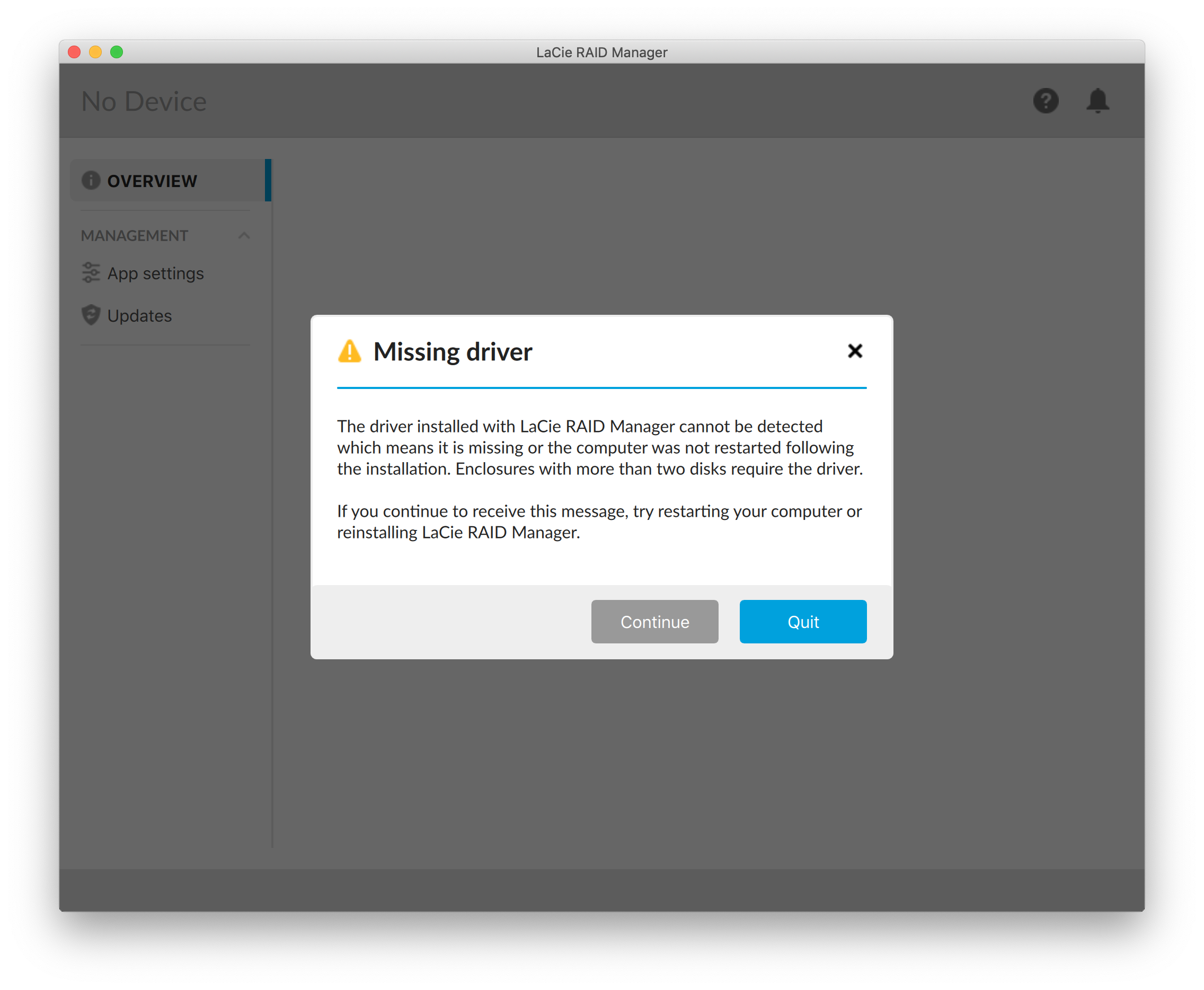 Connecting the drive to another Mac that has not had a recent LaCie RAID Manager update works fine, but as of now my production machine is unable to talk to my drive array at all.