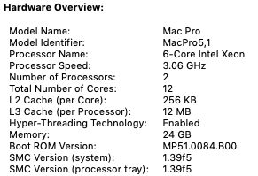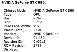 I have a Mac Pro 5,1 (was originally a 2009 4,1) with a flashed NVIDIA GeForce GTX 680 2 GB graphics card running Mojave 10.14.6. It was previously running fine (with some help from DosDude1 - I've brought the SSD over from my old Mac Pro 3,1) but I had to erase & re-install Mojave on my SSD since moving to the Mac Pro 5,1 - and now my graphics card doesn't work properly! Help! It had been working (Metal) in this 5,1 but now since the re-install, it is no longer Metal compatible. This means that the Mac Pro 5,1 won't play any movies/video at all & is almost unusable.