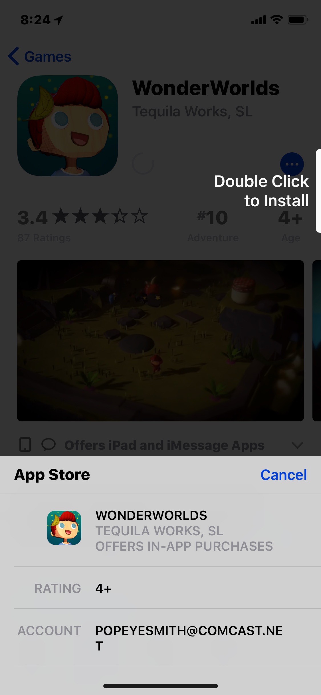 Just updated to 11.1.1 on the iPhone X and now I can't seem to install new apps from the App Store. I get this weird screen that appears to be stuck (see image) inviting me to double tap to install but not giving me the spot to double tap. The double tap message actually bounces on the right hand of the screen as if it is trying to come into view and the app profile screen seems stuck at the bottom fo the screen.