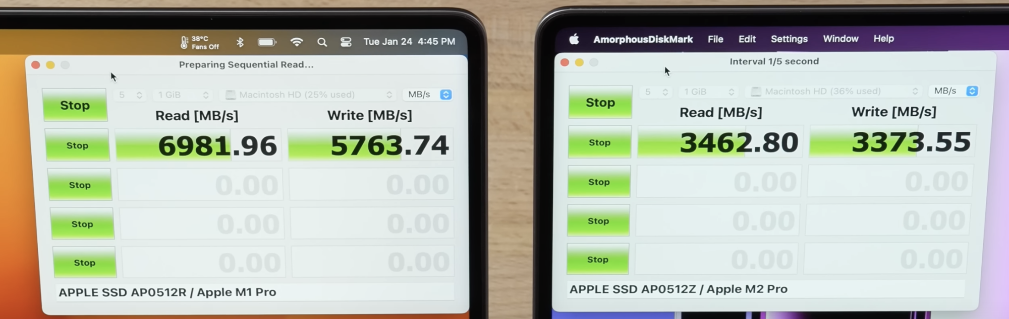 - Slower SSD speeds due to fewer NAND chips on MBA M2, Mac Mini and 13-inch MBP
