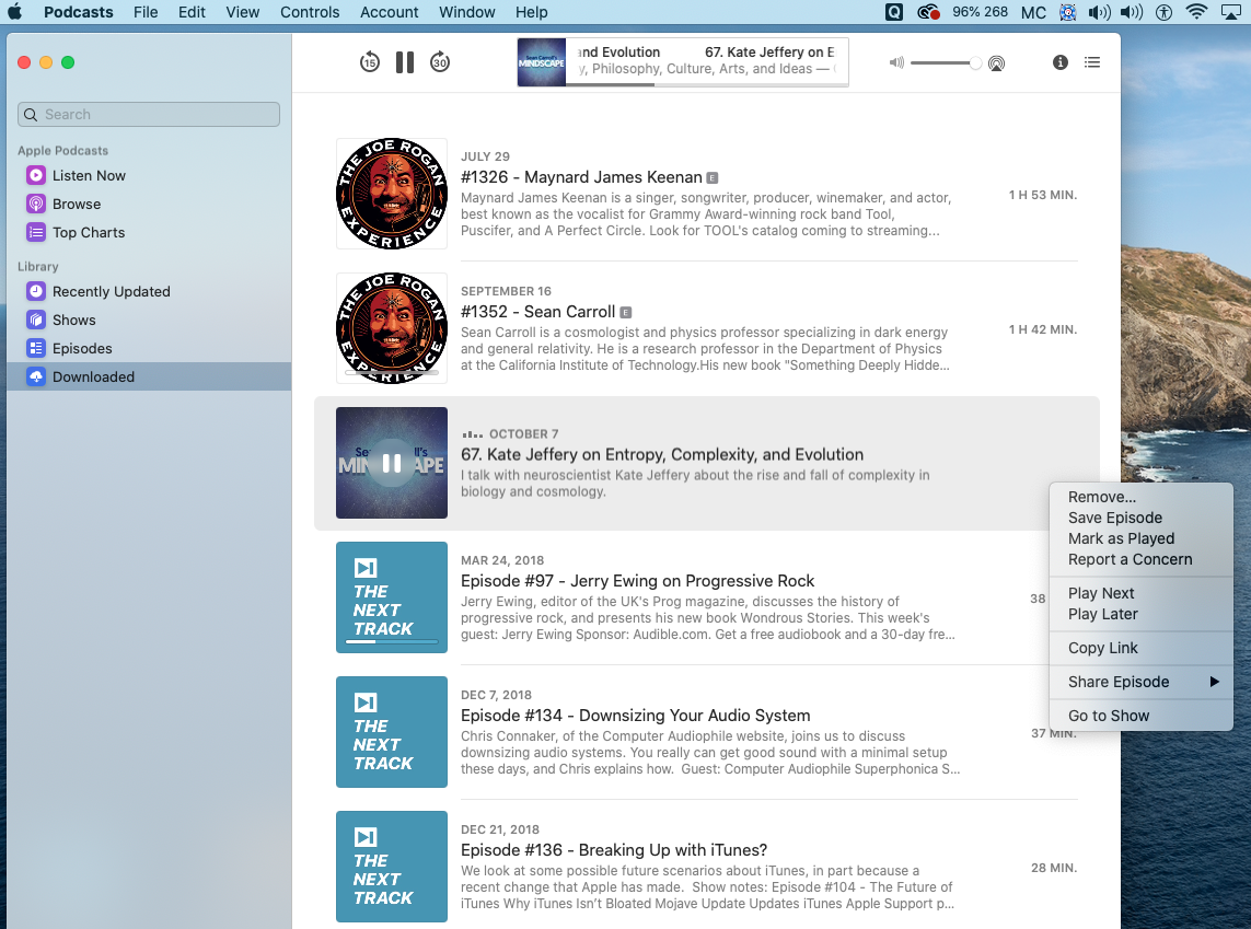 Initially i thought the separation of Podcasts in Catalina was a really good idea and thought that Apple would offer more features and improvements - but the opposite has happened - "Podcasts" has been "nerfed" to be more like the iOS app- to make it worse I find out my iPP 12.9 on iOS 13 is no longer recognized on Mojave - so no going back
