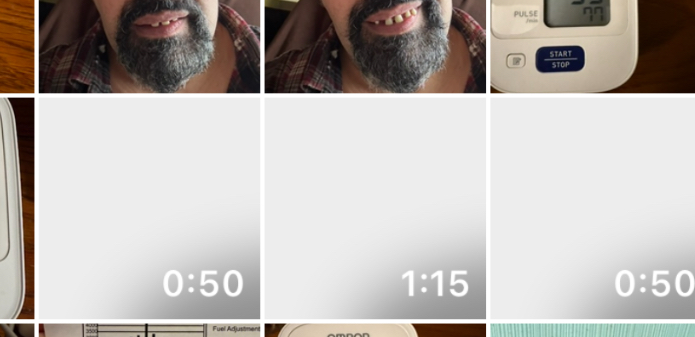 When I save my videos from my Eufy cam they show up as white thumbnails that don’t play in my photos app since upgrading to the iPhone 16PM. If I seek forward or backwards when attempting to play said video it shows a static image of it. Excuse my teeth in the photos, I’m British. . 😂