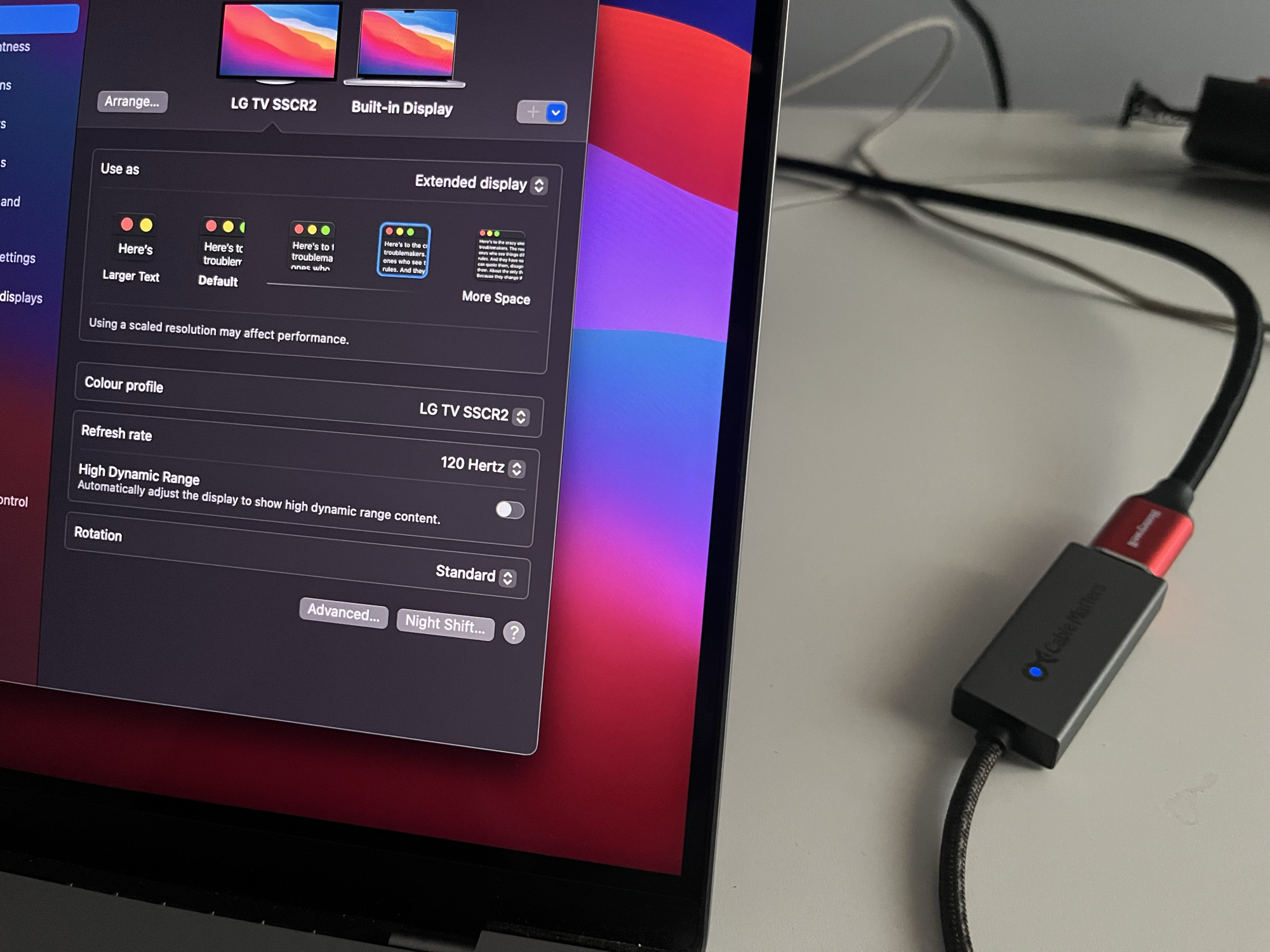 3840x2160@119.99Hz YUV444 8bpc" for RX (i.e. DP) suggesting that Mac is using 444