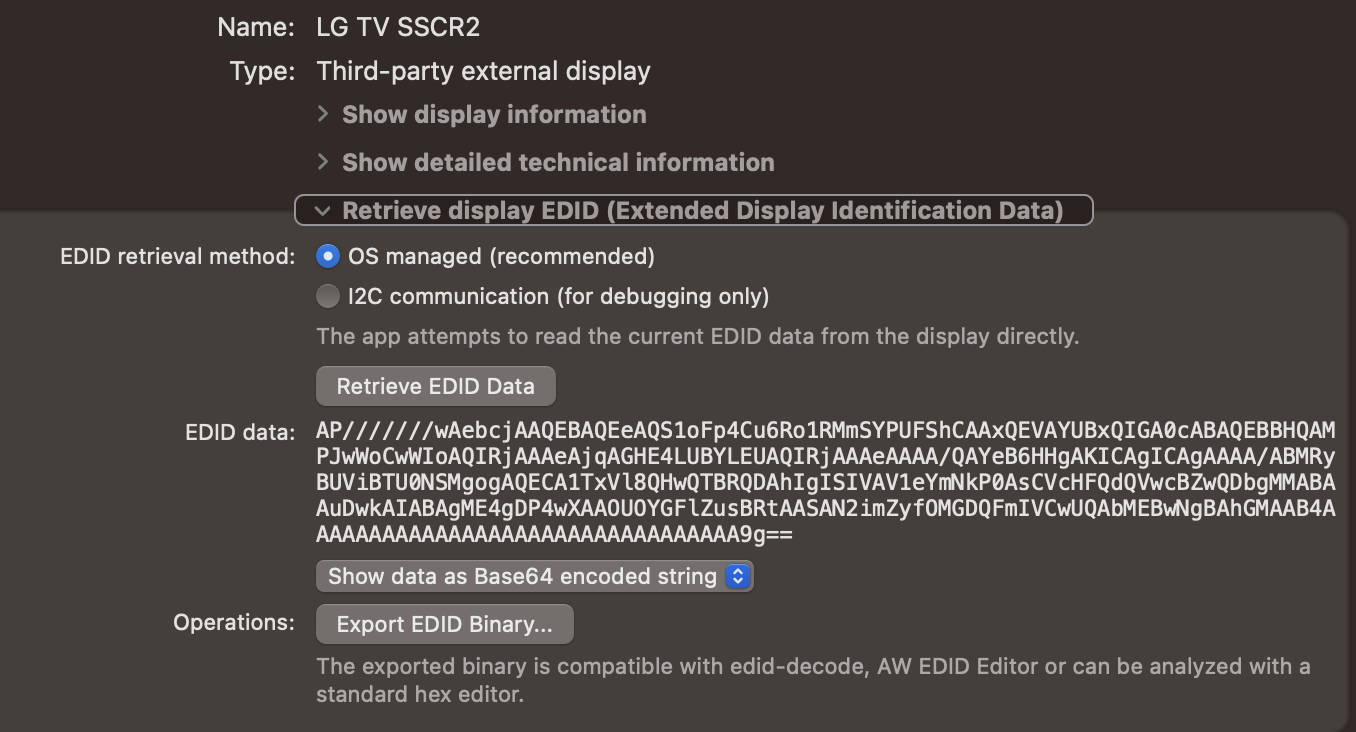 I tried my Cable Matters 201388-GRY (VMM6100) connected to USB-C port of Radeon Pro W5700 (in eGPU) connected to Macmini8,1 running Ventura 13.3 with SwitchResX. I know this thread is for Apple Silicon, so this post is just a reminder that Intel Macs also have issues.