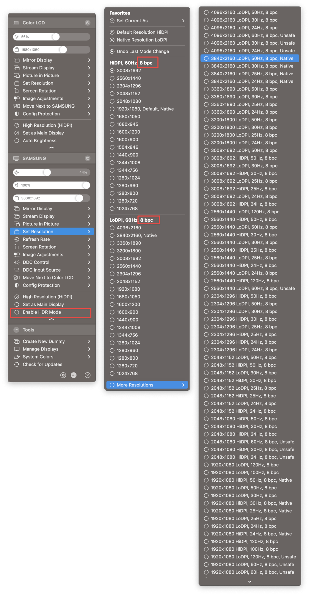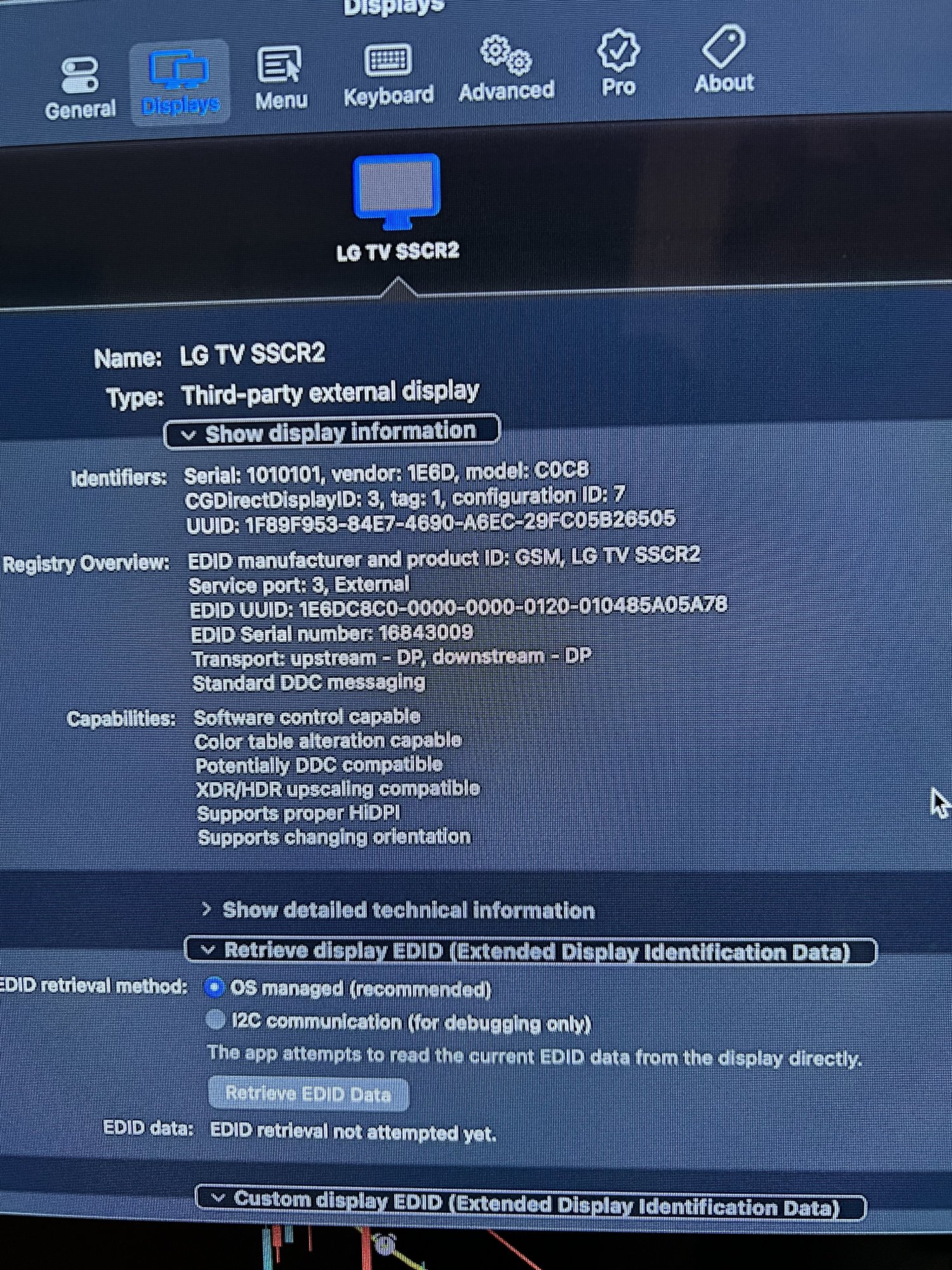 My problem was my hdmi cable and once I switch it I got what I wantedHello everyone, BetterDisplay is suggesting that I'm only getting 4k 8b 60hz HDR on my Samsung TV, which is far from the 4k 10b 120hz I was hoping for. Based on this thread, most discussions about TV settings are focused on LG models. I'm wondering if there might be a compatibility issue with Samsung. Can anyone offer any insight or advice? Thank you in advance for your help.