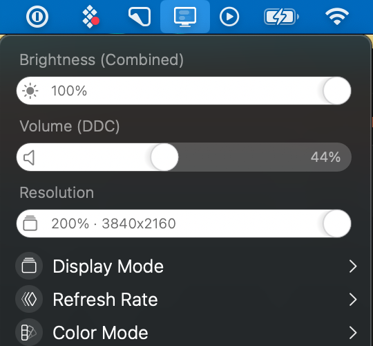 That's all I have for options. To recap, On BetterDisplay I set the resolution to 3840x2160 @ 60hz, made sure HDR was disabled, and enabled HiDPI, but the coveted 120hz rate still isn't available to choose from. I'll keep testing once I get the Pro version of BetterDisplay so I can access the advanced configurations.