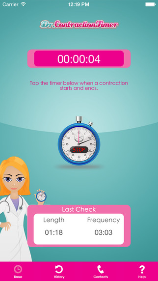 Dr. Contraction Timer will make it easier for you since you don’t have to concentrate to write down contraction lengths and doing calculations during the labor, the app is doing it for you.