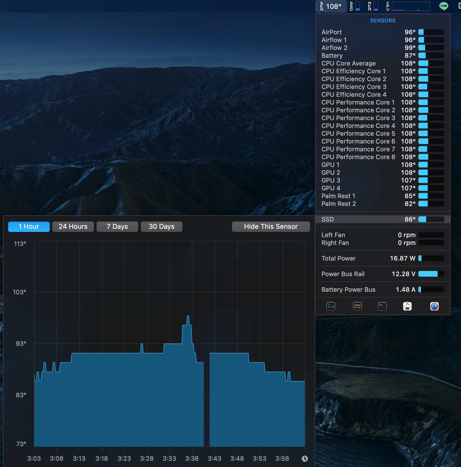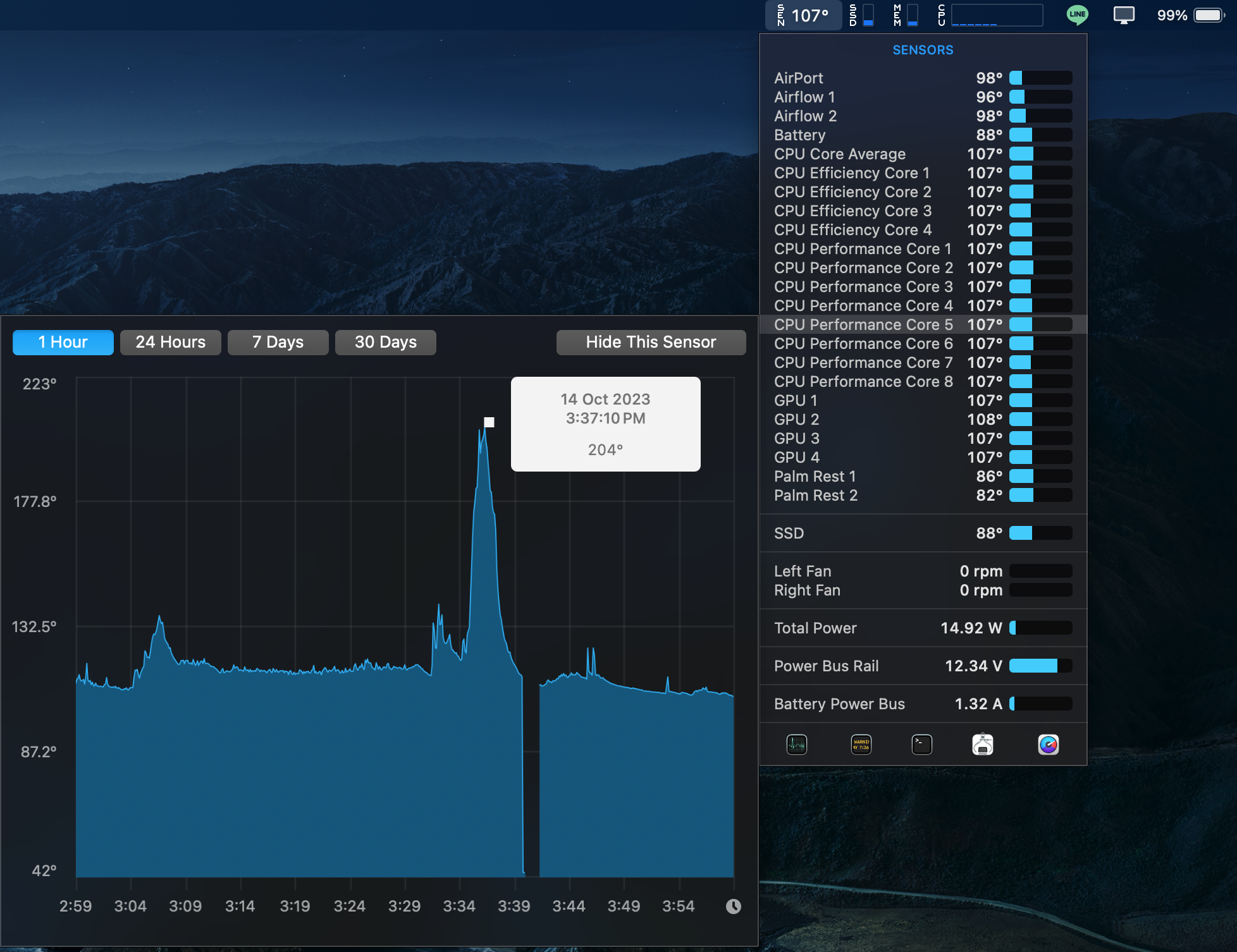 I was using the latest Ver. of Photoshop and Davinci Resolve and for the first time in 5 months my fans turned and and the tempatures spiked dramatically... I'm new to MacOS / Mac Computers and wondering if these temperatures are normal or is it something I should look more into?