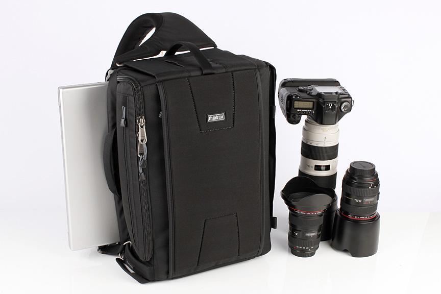 Kata 3n1-22: Big enough for my D7000, battery grip (attached), 3 lenses, flash and accessories... and that's without going into the "general" section at the top of the bag. The laptop section is only big enough for a Macbook Air (and and probably only the 11" at that) a small, thinnish netbook, and is perfect for an iPad in a case.