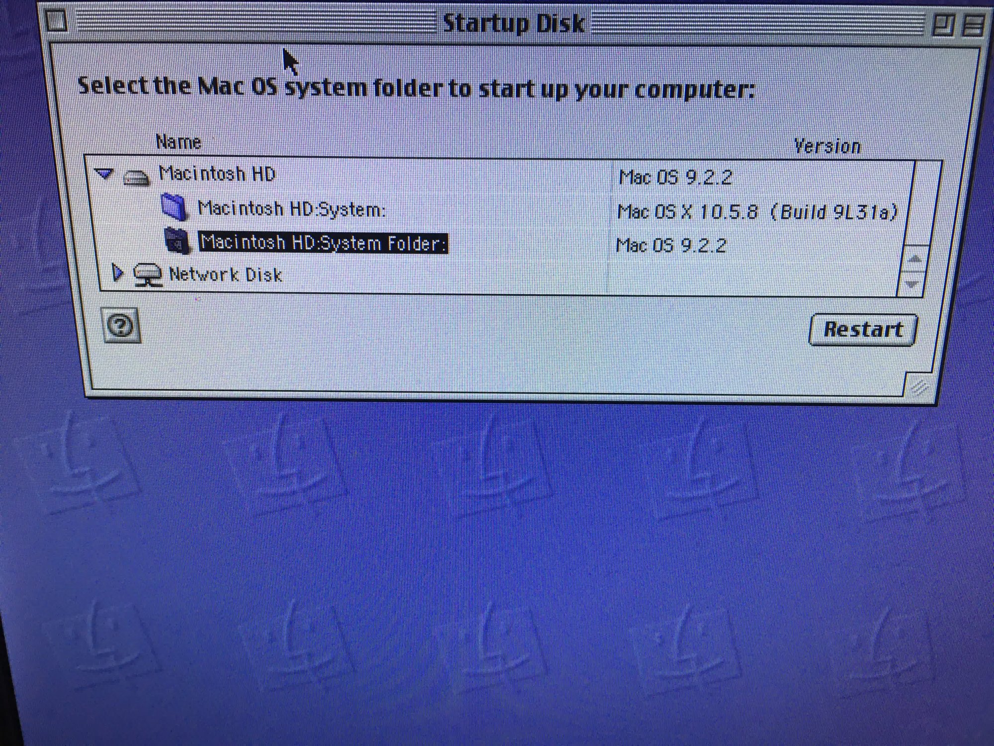 I sought to dual-boot OS 9 and Leopard using the MacOS9Lives ISO image on one partition. Both operating systems installed successfully and I was able to get OS 9 to work, but upon installing Leopard the Startup Disk preference pane failed to detect OS 9.