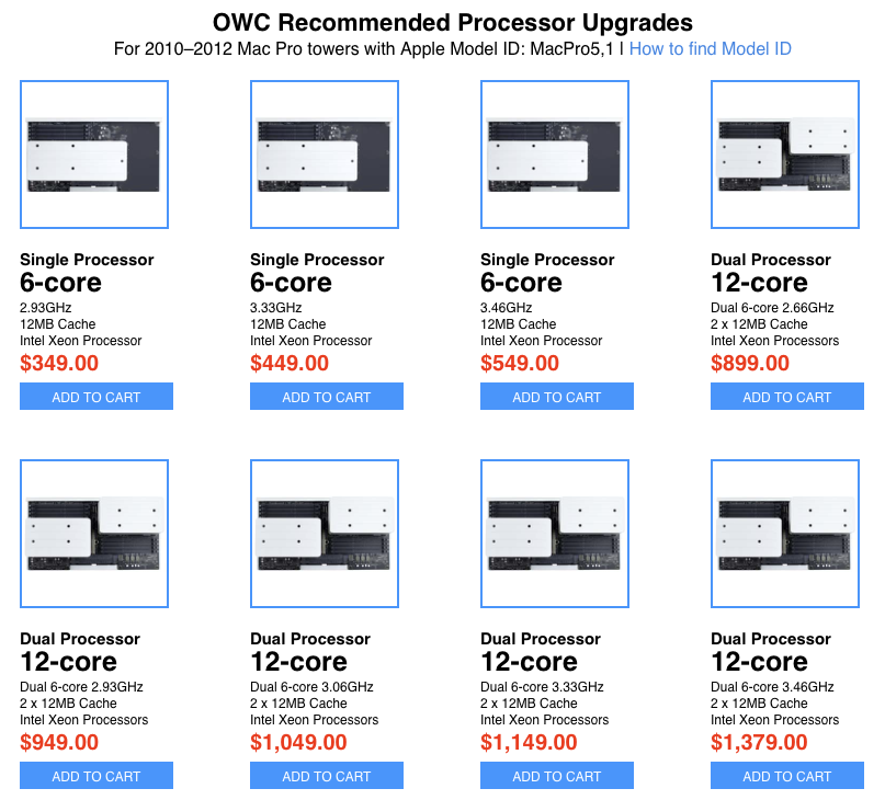 I just opened a package from OWC which I expected to contain a processor tray having two 6 core processors. I see one large sync and only 4 memory stick slots. It's supposed to be a 3.46 GHz 6 core, an easy swap for my dual 4 core Westmere Xeon 2.4 GHz. Since presale tech support kept using plural referring to the processors when i tried to get reassurance it was indeed 2x6 cord I thought it was a 12 core tray. Looks like a single core. Or is it? It's late on a Saturday night and cannot call OWC.