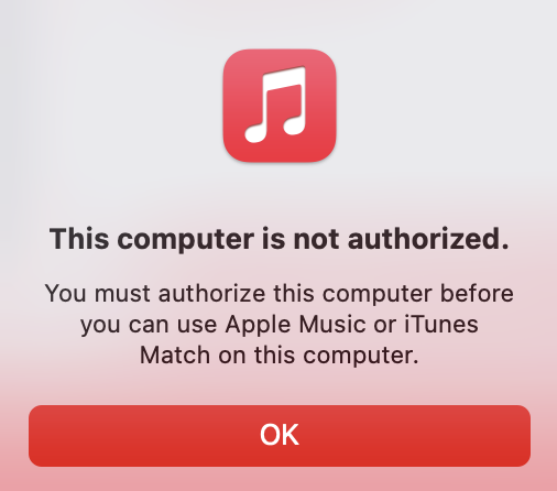 1/ All songs are showing in duplicate in the new computer's Music app. When I click the first instance, I get an error message saying "This computer is not authorized." See attached. If I go to the actual Music folder, I see only one file for each song.