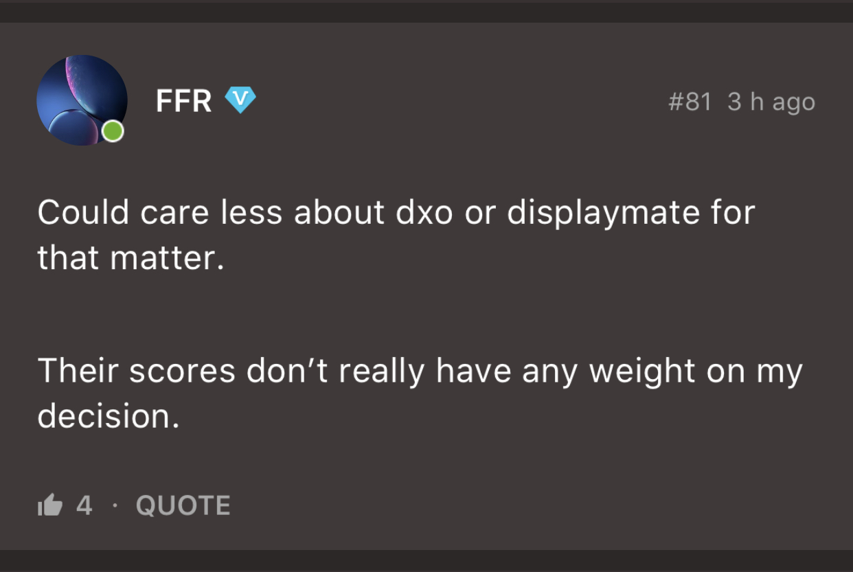 I agree with you. Though These scores are meaningless , DxO has lost a lot of credibility over the years, meaning that they are only relevant in cases like this , where apple fans hail them a source, but give it 6 months when x decice claims top spot , and suddenly call of them no longer being relevant spread. This is my issue, DxO is only relevant when it’s scores support the narrative , the hypocrisy is very annoying . My personal opinion , DxO is never relevant. And this is from an apple supporter. So anyone using them as a source ..... I’m annoyed when the same posters have flipped back and forth.....