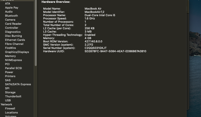 This is an unmodifed base model 4GB early-2015 MBA A1466. I'm attaching system info. The 'symptom set' is that either under Catalina, or under Boot Camp, Windows 10 Home x64, the behavior is about the same. On a fresh COLD start [being certain that power was actually cut, all devices dead], performance is about what one would expect, for a short period of time. Pretty snappy with Windows 10, WITH mods.... i'll explain... and about what others experience with Catalina, with all.. ALL accessible background apps OFF...ruthlessly. Because of its issue I only use this MBA for troubleshooting other Macs, referencing, etc, not for everyday work. No important files stashed on it, and as said, everything that I know how to access turned off.