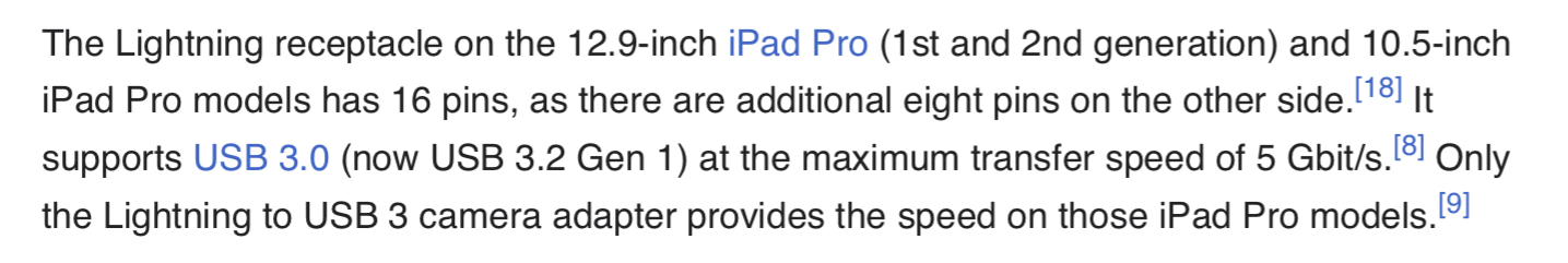 This is mostly true for non-pro phones, but have you tried AirDropping (or god forbid cloud syncing) 4K ProRes video files? It takes forever. If apple market the pro phones to content creators then the device should be able handle pro workloads.I don’t think there’s really a need for faster speeds on the iPhone. I can’t imagine there’s many people moving content on or off the device via cable vs wirelessly.