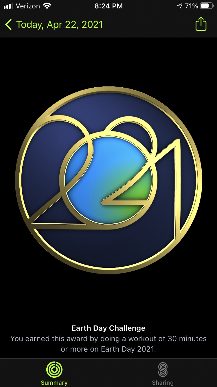 BugeyeSTI macrumors 604 Aug 19, 2017 7,565 9,625 Arizona Apr 23, 2021 #3 millerj123 said: This should be its own thread. View attachment 1762536 Here’s mine. Click to expand... Earth Day Award 2021 Anyone else’s Earth Day award not come through? I’ve done two workouts totalling 31 minutes and nothing. I know this happened last time with a limited edition award, and restarting both devices sorted it. Nothing this time. forums.macrumors.com