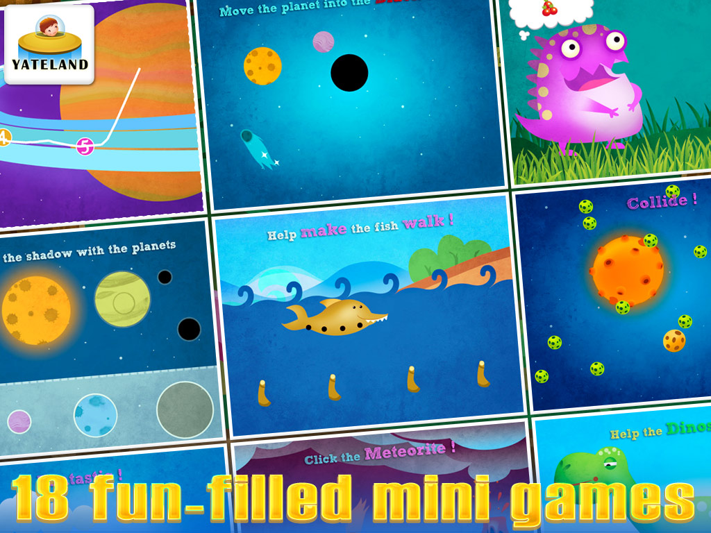 How did the universe begin?How was life born on earth?Where did water on earth come from?Welcome to earth school, Earth School is an educational kids apps containing 18 different mini games. It will show the big bang to earth generation, from life beginning to dinosaur extinction, enjoy!
