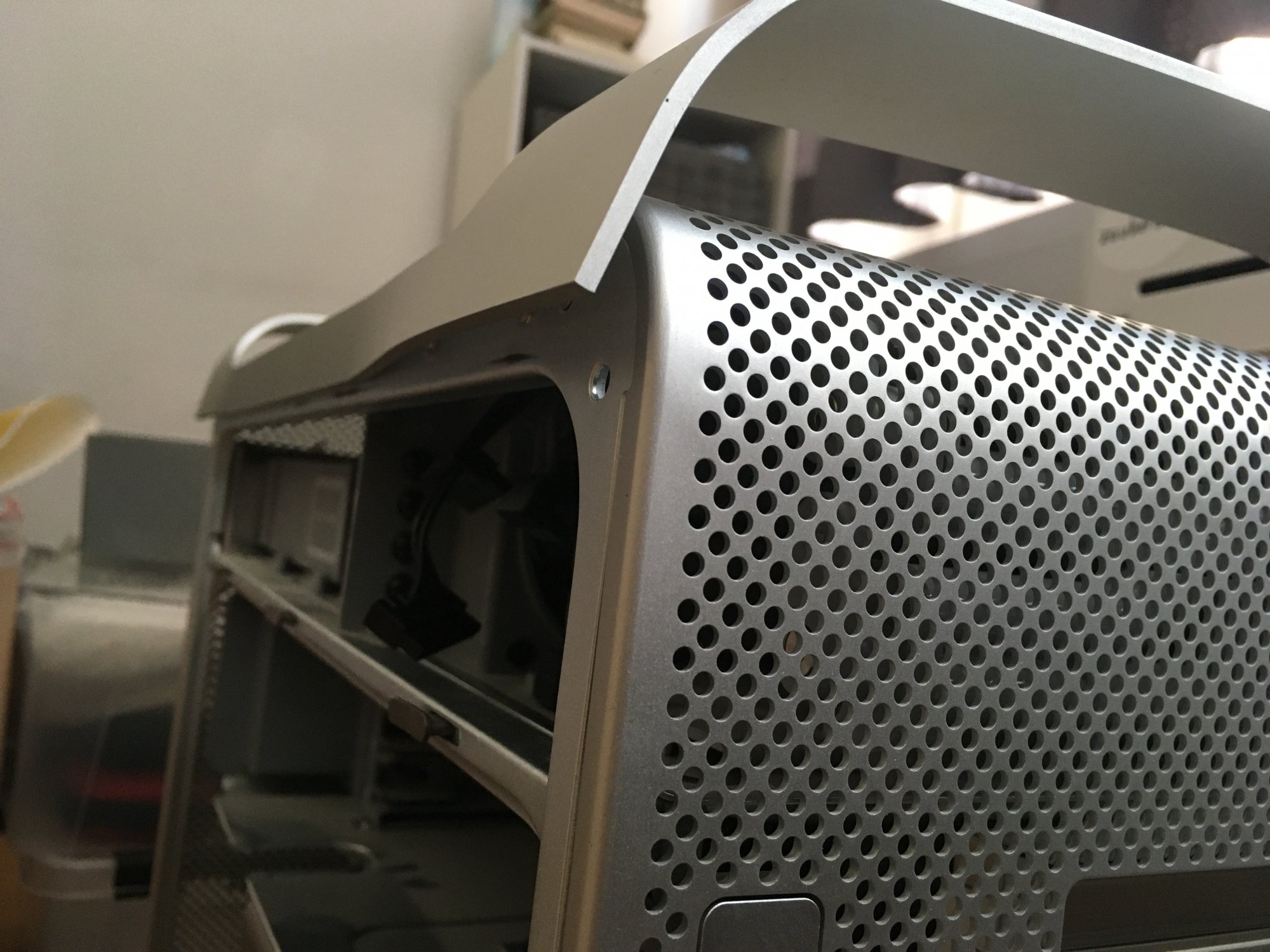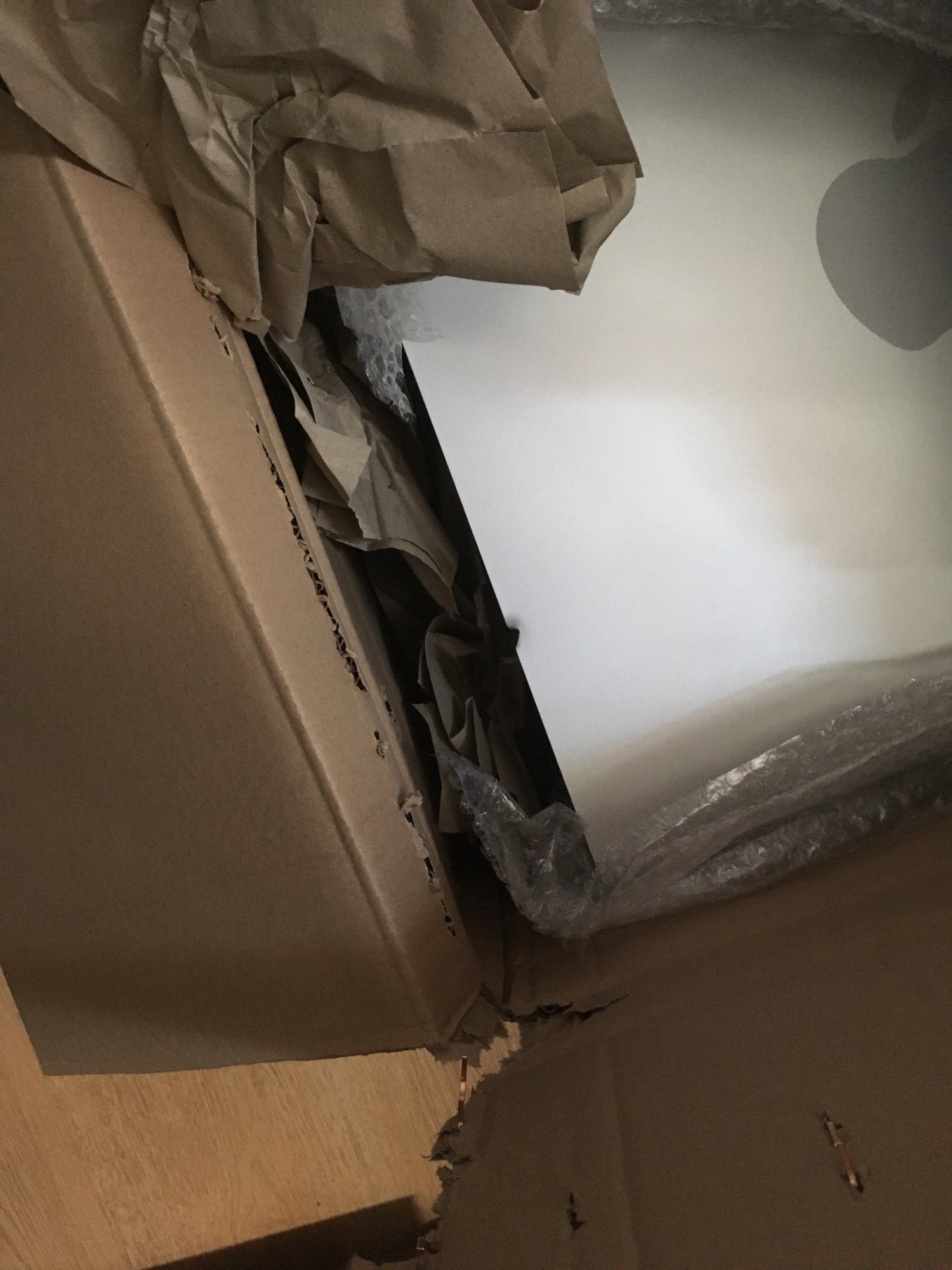 I got myself another PowerMac G5 Late 2005 2 weeks ago (even though I had planned on not buying more Mac stuff but I just have a fable for that particular model). I saw it by coincidence on eBay and only few people bid. Eventually I got it for 55€ including shipping. Since I know how those machines usually turn out when not shipped in their original packaging, I messaged the seller prior to bidding if she still has the original packaging which she denied. She assured me however that she has a "special box" with inserts that will for sure protect the Mac. In hindsight I probably should not have bid because shipping G5s in anything other than the original box is asking for trouble.