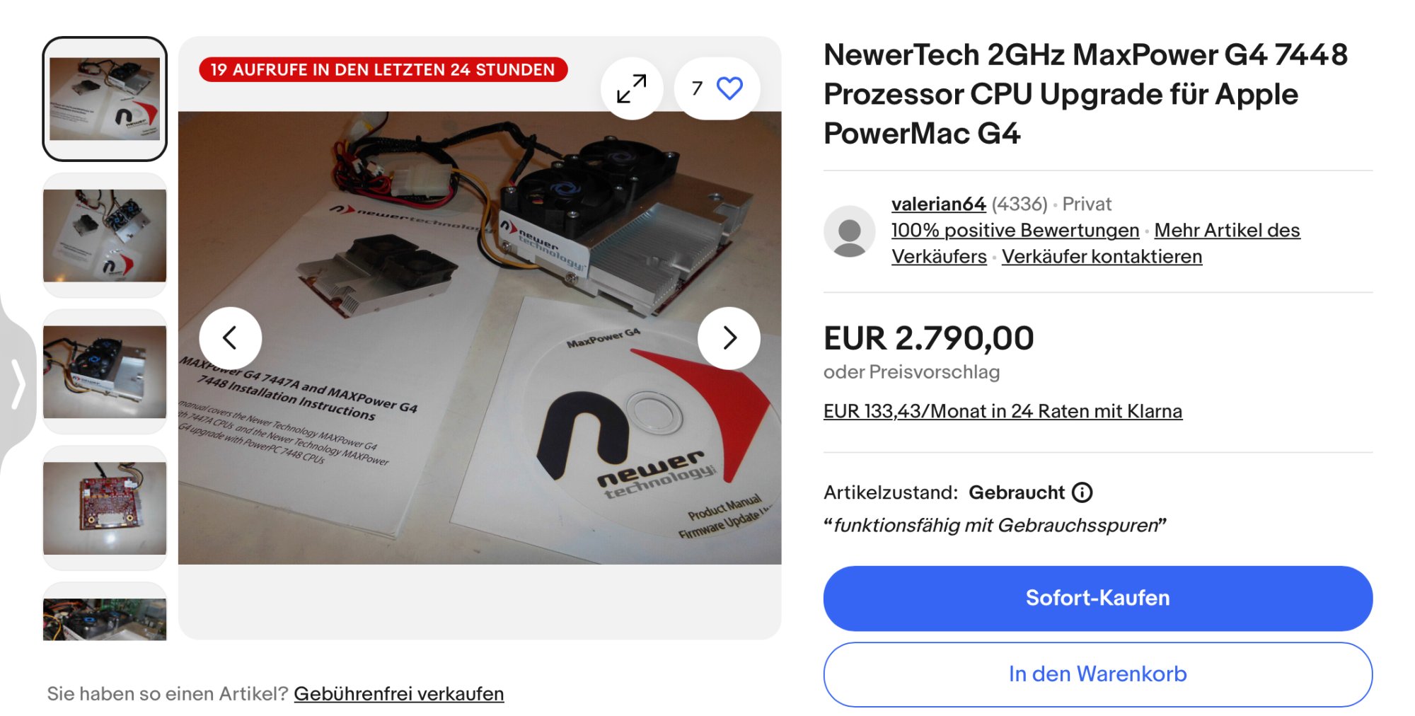 A complete Mac of which the CPU has dozens of times the performance of the 2.8k Euro 7448 offer for just 2.5 times the price? You must be lucky...Here's a candidate for the other thread: almost six thousand, three hundred British pounds with free delivery but an additional charge of £10 GBP if you want to collect it yourself from the seller.