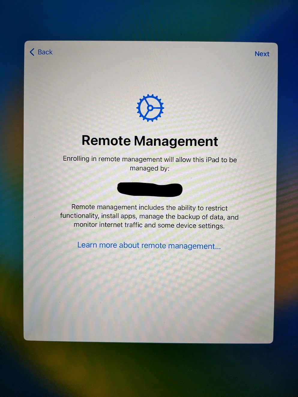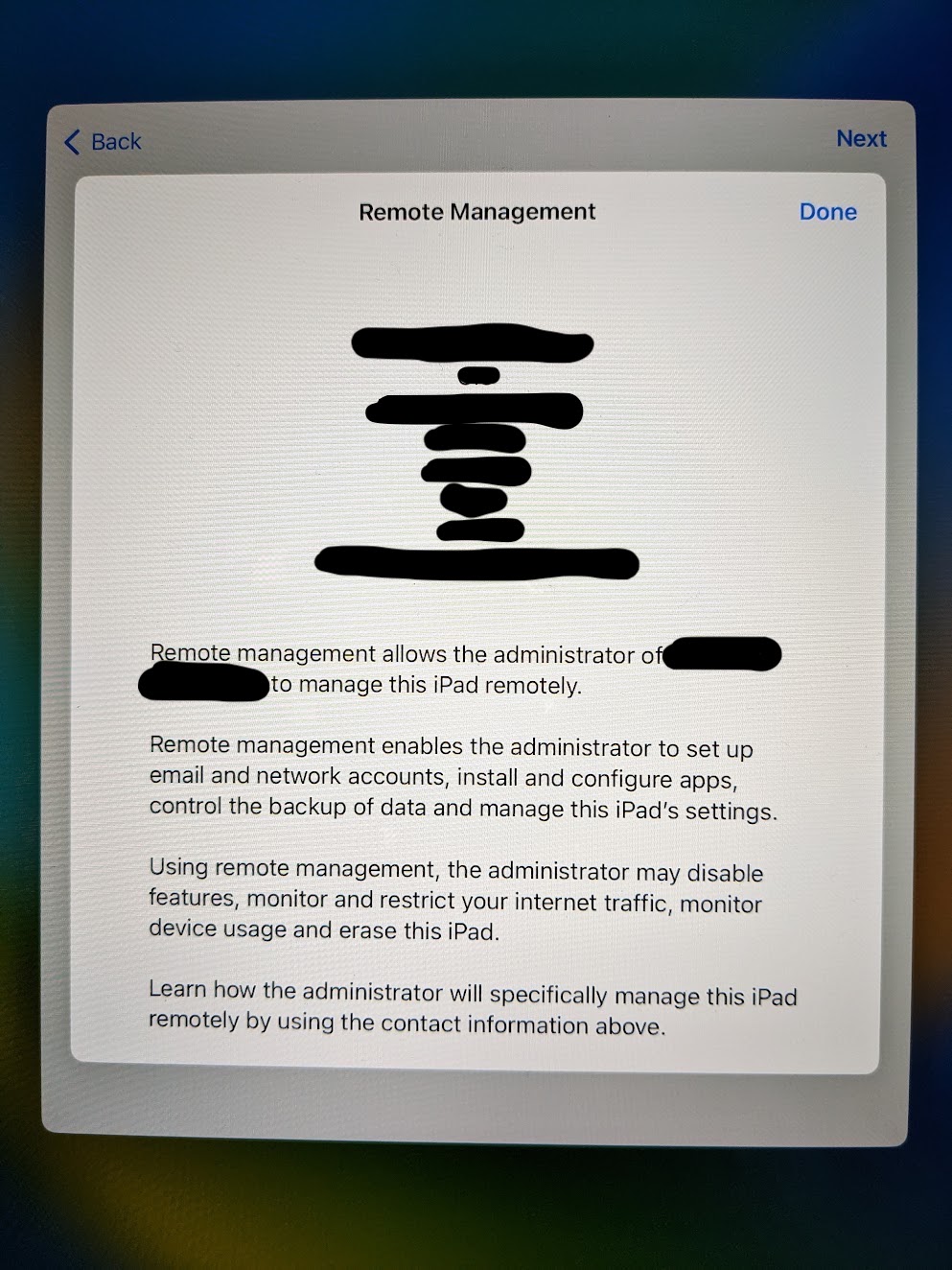 Despite that, I decided to erase all content and settings to be on the safe side. While going through that procedure, I came across the following remote management screens-