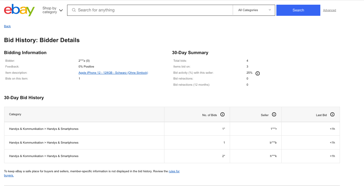 I suppose, though at this point, I’m sort of impelled to keep a tab on this item’s bidding history [Fig. 1]; a tab open on the winning bidder’s page [Fig. 2]; and a tab on the seller’s currently listed items page (to see whether it gets re-listed and/or an untoward change in their feedback given to others).