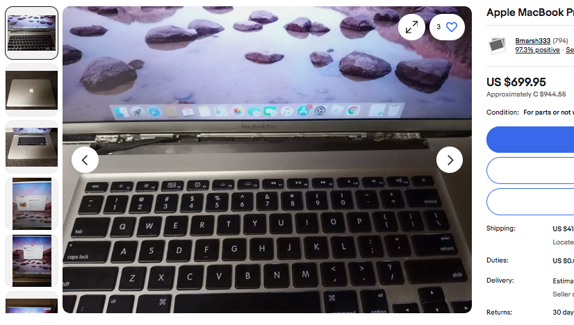 Is that a pre-2016 15" MBP too? Are they insane?For $950 (about $1K with shipping), “for parts or not working”…