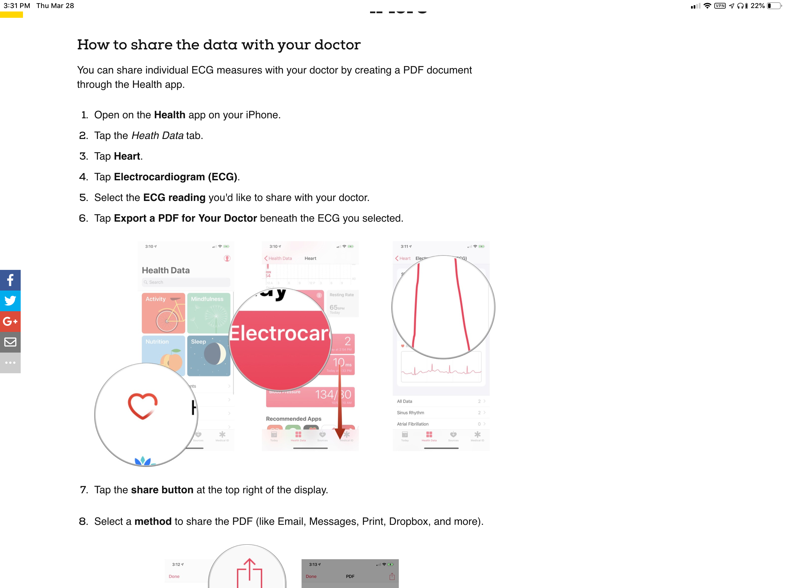 This week saw another, this time a specialist (advice for better health). He was more curious and fascinated about it. Again the quality of data (1 point) is not as accurate as the 12 point systems, but he did like it. I was surprised when he told me there was no way for me to send him the AW ECG results even though he was a private practice.