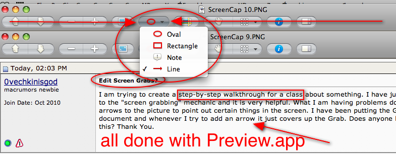 I am trying to create a step-by-step walkthrough for a class about something. I have just been introduced to the "screen grabbing" mechanic and it is very helpful. What I am having problems doing is adding arrows to the picture to point out certain things in the screen. I have been putting the Grabs in a Word document and whenever I try to add an arrow it just covers up the Grab. Does anyone know how I can do this? Thank You.