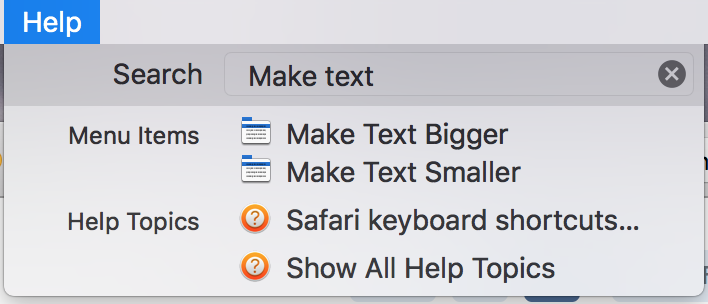 Change text size in Safari: Option-Command-+. Wish I had known about this earlier.