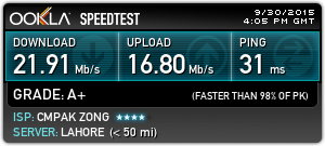 Here ~22 Mbps means that I'm faster than 98% of whole Pakistan![]()