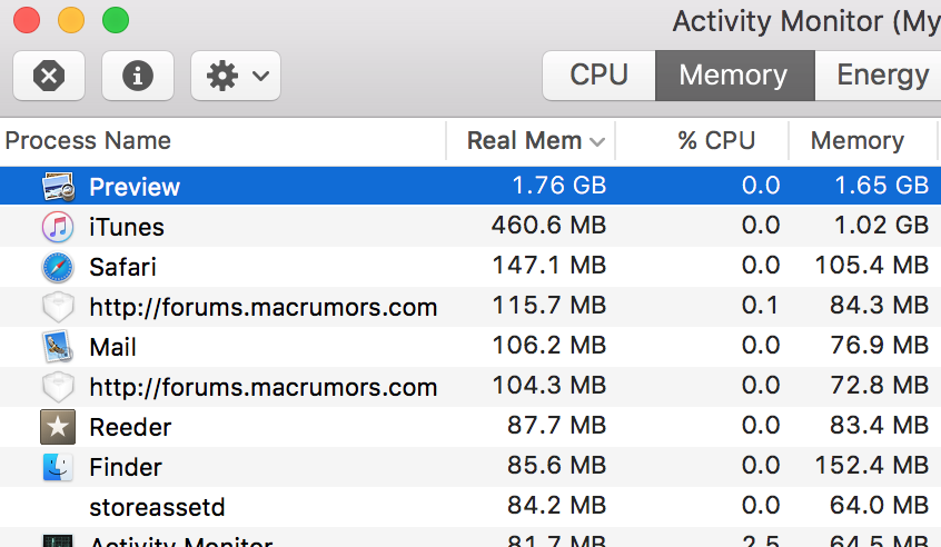 It amazes me you are angry about memory usage from Preview yet the fact that in one of the screenshots there are two (no not one, but two...the horror!) processes for this forum each consuming 110+ MB of memory goes completely unnoticed! Not to mention kernel_task consuming almost abusing 850MB of memory. Nothing should ever use memory, memory has to have 0% usage because you buy stuff in order to not ever use it since using it would be a complete waste of money