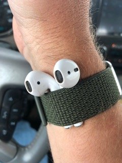 The Wrist Fit provides two options for carrying AirPods on your wrist: you can use the included black silicone strap to only carry the AirPods, or take off the small silicone attachment and slide it onto a compatible Apple Watch band. Elago says the attachment fits both 38mm and 42mm Apple Watch bands.Lightweight and slim fitting. Perfect place to store your AirPods while you work out or when you run out of battery.