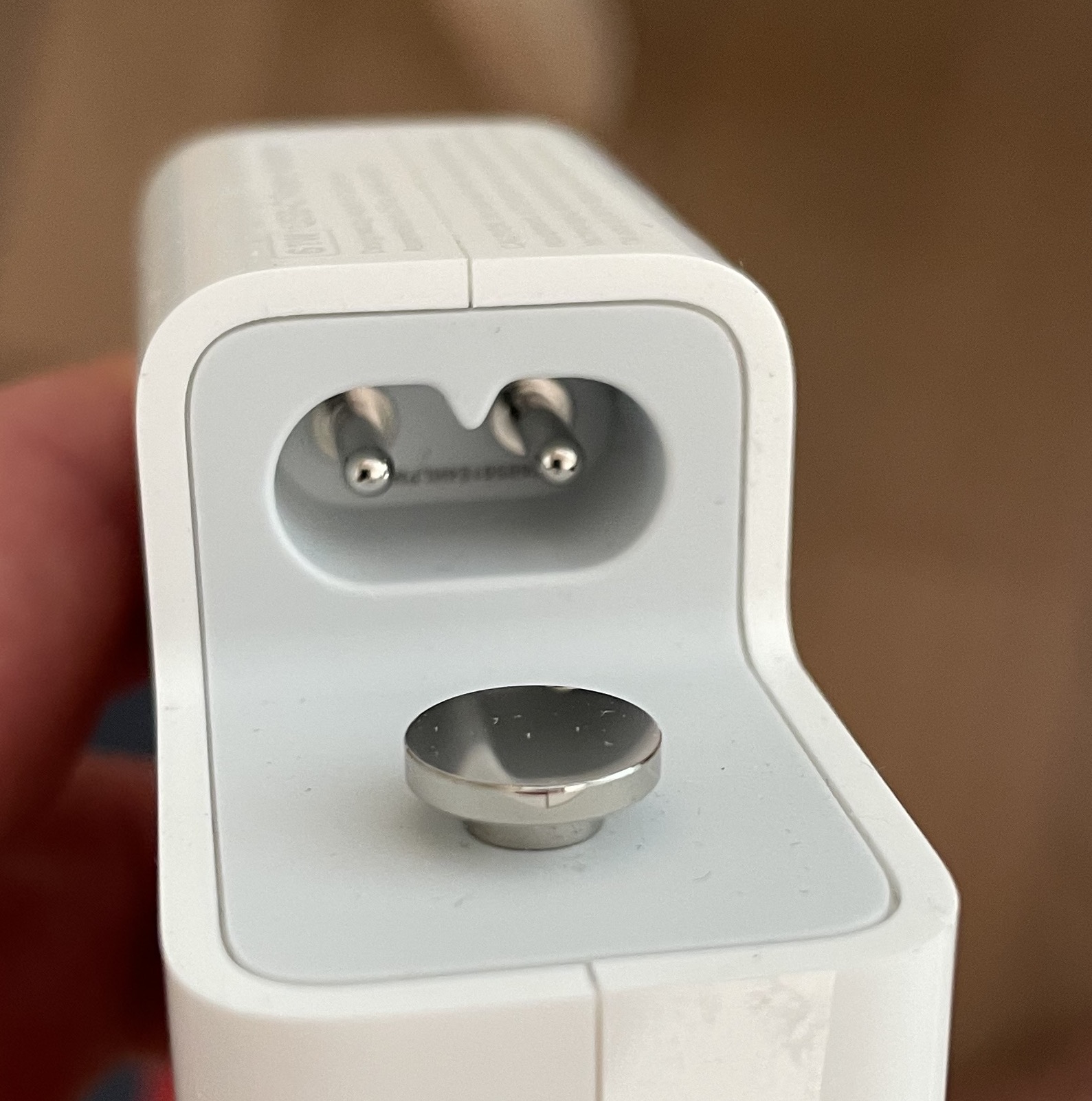 fwiw, I have 2x Apple plugs, 1x from Australia and 1x from USA. Neither of them have metal rails on the inside like the one above
