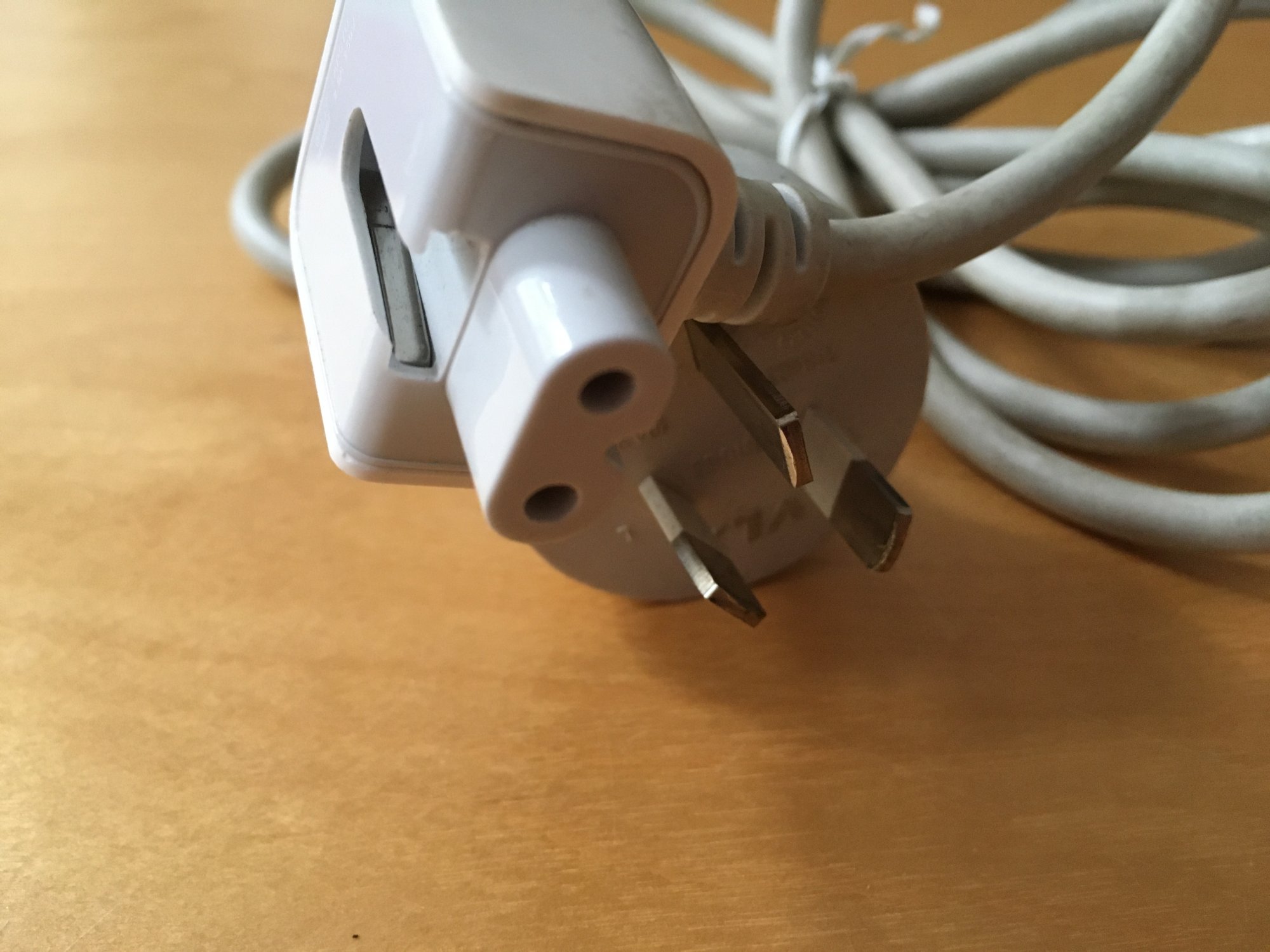 The Australia cord is grounded. I have one. See the metal rails in the slot.fwiw, I have 2x Apple plugs, 1x from Australia and 1x from USA. Neither of them have metal rails on the inside like the one above