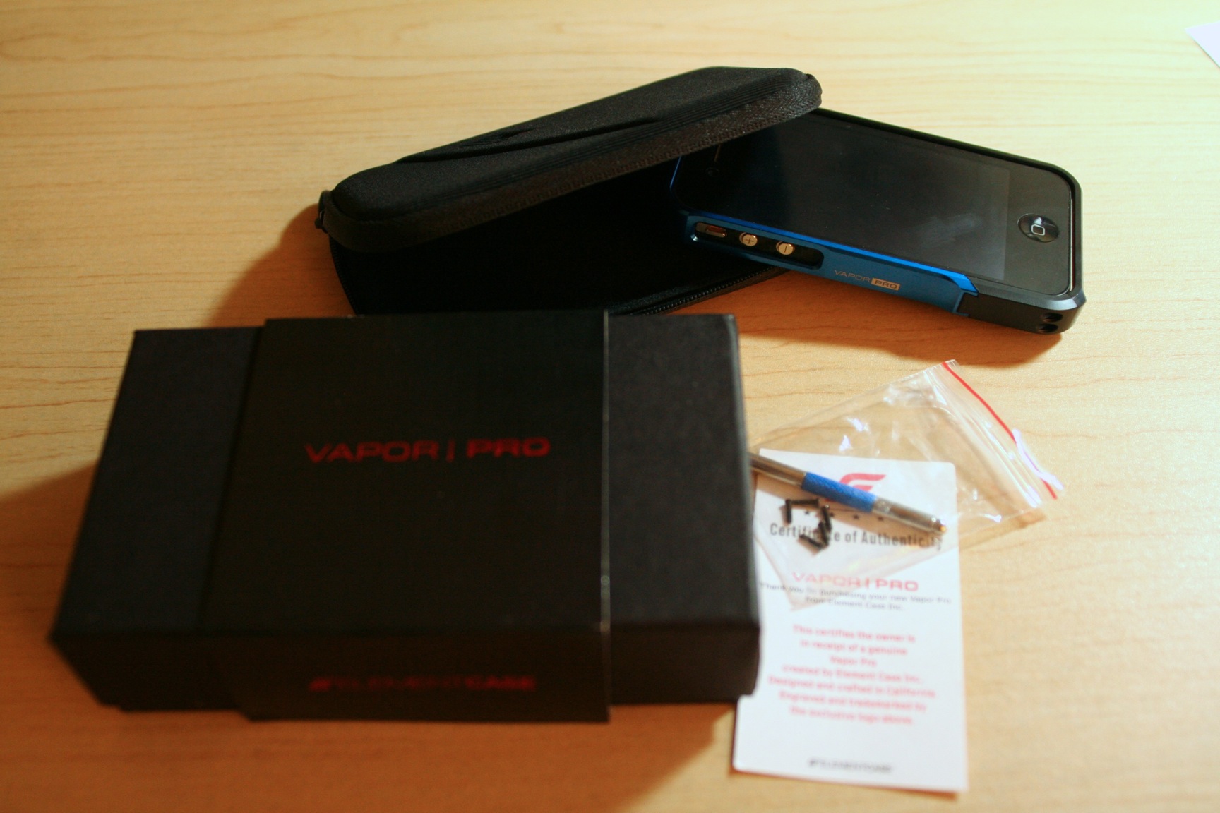 The good: It came in a Vapor Pro box with a zippered case, certificate of authenticity (!) and tool kit with foam rubber "gasket" pieces for lining the case in key locations. It uses small, blacked Phillips-head screws rather than the larger hex screws of the genuine article. The workmanship is pretty good-- joints are flush, anodized color is consistent (though I had a small defect in the color of the black piece in one spot near an edge), and the machined aluminum is smooth, though with slightly visible tooling marks on the small beveled surfaces when held at an angle to the light. The vendor on Alibaba offered to exchange the piece with the color flaw, but only if I returned it to him in China first-- something I was not willing to incur the cost on. It did not appear to affect my 3G signal or GPS functionality at all.