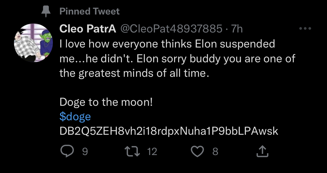 It literally only said: “Curiously, Cleo PatrA's account was deleted.”