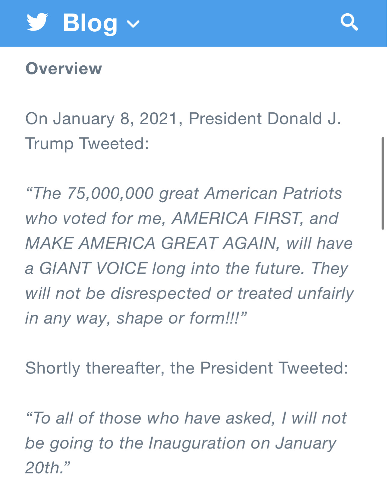 45 was suspended because he repeatedly broke Twitter rules. Feel free to look up their explanation.Are you saying Trump was suspended when plenty of Democrats have called people to rise up (not that Trump ever said this, I’m just making a point). You’re hilariously in denial here.