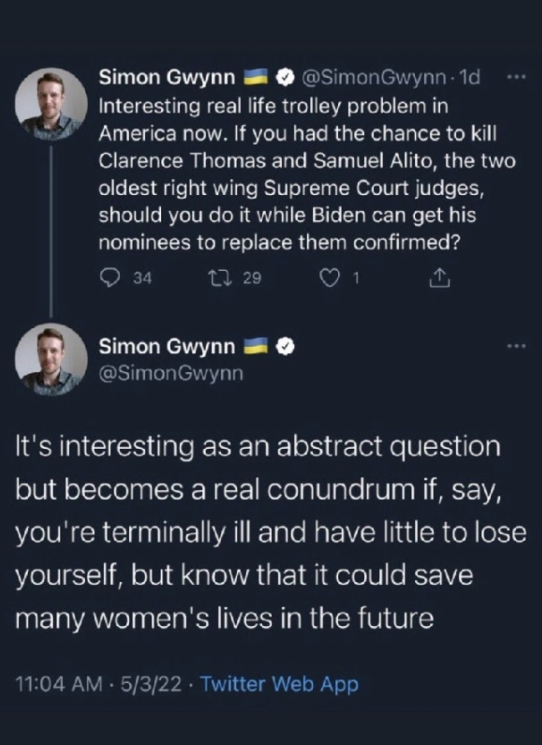 You forgot the ruminating about assassinating Supreme Court justices.Your link goes to more posts that contain absolutely no evidence of conservative dominance on Twitter. Again, post it here or we’ll assume you’re just deflecting because you don’t have any.