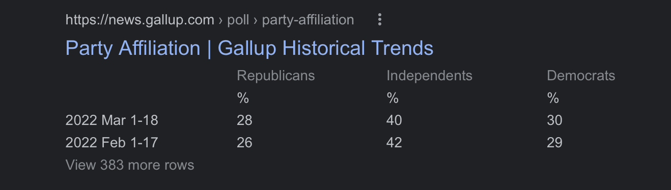He’s pretending to be independent, which we all know he’s not.Still, around 45% to 51% of voters chose the Republican presidential candidates in elections this century including over 74 million in the 2020 election. I just don't see how that could be considered a "significant minority." You might as well then call democrats a significant minority too.