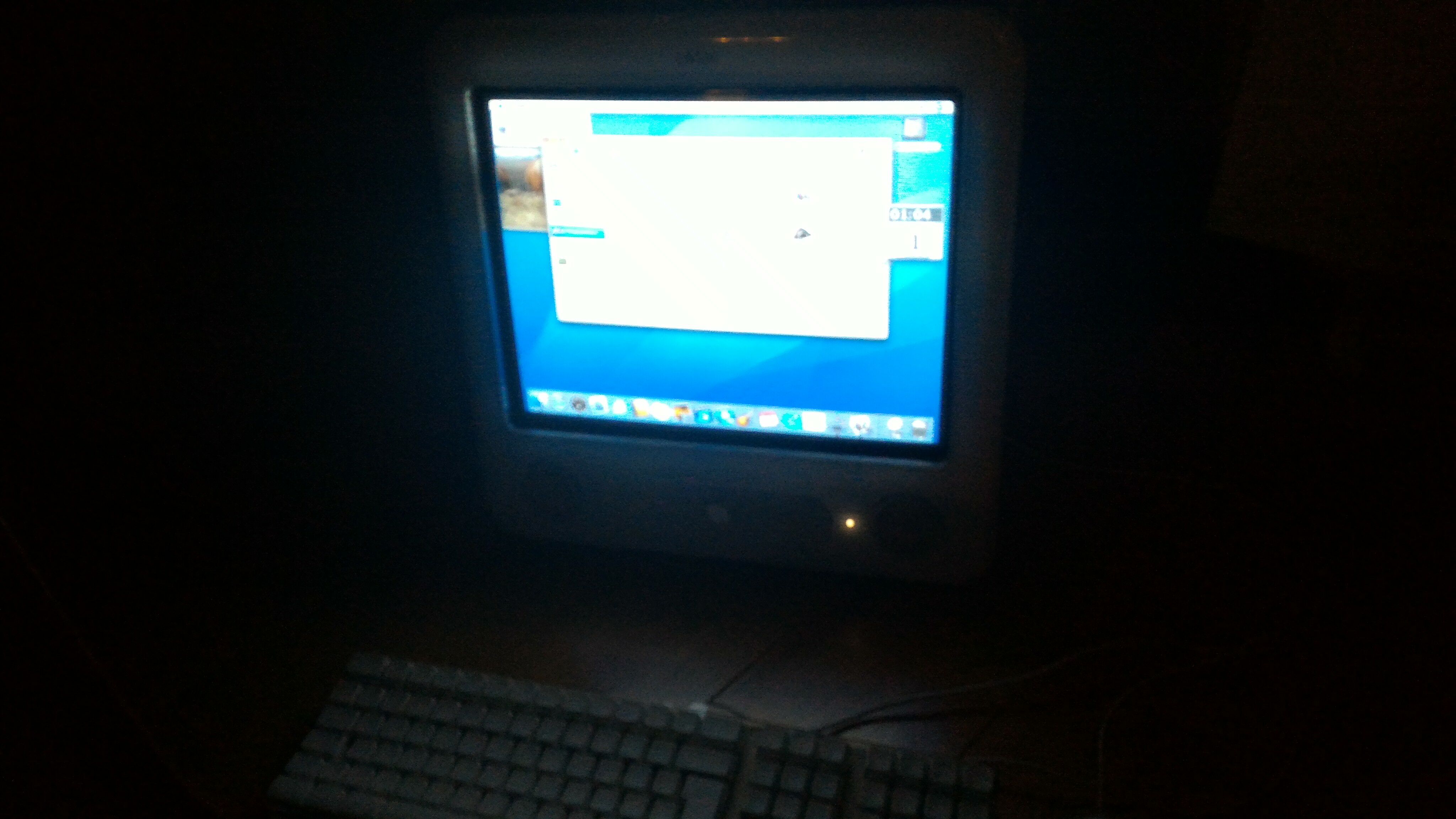 As I said I'd do, I picked up the eMac this afternoon. As I expected, it's the 1.42GHz Radeon 9600 model. The guy couldn't tell me what specs it had (I specifically asked him to open up the DVD latch and take a pic of the sticker, instead he send me pics of the bottom), but due to the copyright date being 2005 on the bottom, I pretty much guessed it was going to be. When I came to pick it up, I showed him what I meant, and showed that that is indeed the model I was looking for. Handed him the €10 bill, and went off again. Also came with original keyboard and mouse, which is nice. I didn't get to test it there, but at home, it works just fine. Apparently, this is the highest end model ever made, the original 512MB RAM was still installed next to a 1GB upgrade, and it has a Sony SuperDrive. It currently has 10.4.11 on it, but I think I'll try Leopard on it. Like the iMac G5 and both my G4 towers, it could use a good polishing job, which is something I intend to do on all of them sometime. But, for as of now, this is another great entry to my PowerPC collection.