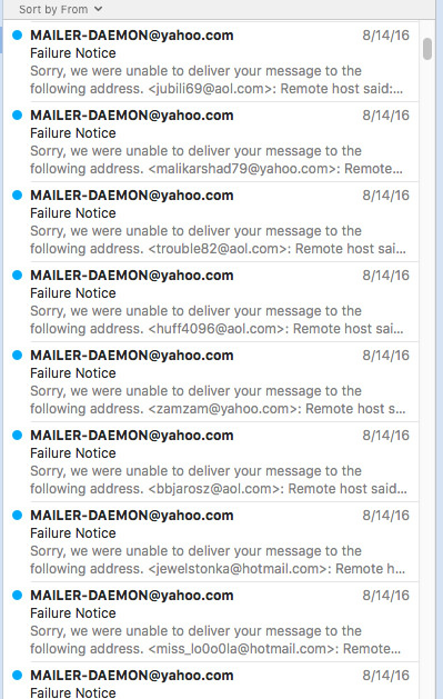 Yahoo is my email provider and I have it routed through Mac Mail. I'm getting over 200 of these failure notices everyday. Each one seems to have a different address. What can do to make it stop?