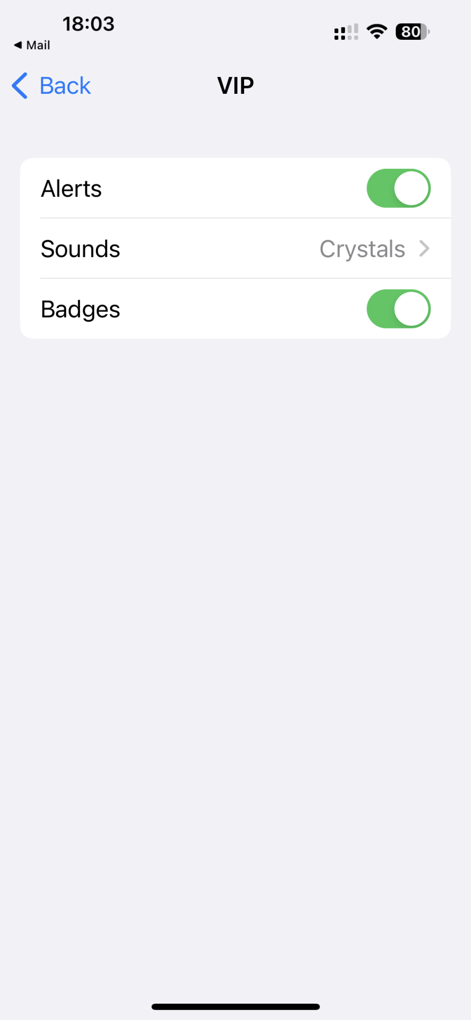 Using the stock iOS Mail app I no longer receive notifications from VIP contacts when I receive an email from them. My Mail notification settings are only set for badges. But in the past VIP contacts would trigger sound and screen Lock Screen when receiving emails from them. But no longer. Thanks for the help.
