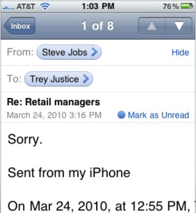 TGM85 said: Care to share that story? Click to expand... It really was not anything that great! I wrote him about a bad experience I had at an Apple Store. He replied "Sorry." LOL. Here is the screenshot !