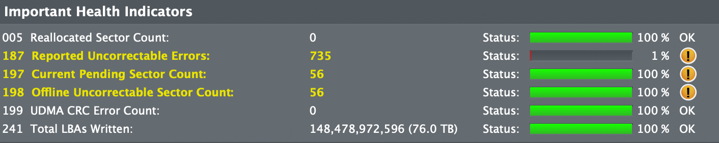 1) Drive was starting to slow down during a copying process, now copying a single 93Gb folder to the functioning drive takes days instead of minutes, and it will more than likely take a total of 3-5 days, with the original estimate at 2-3 weeks.