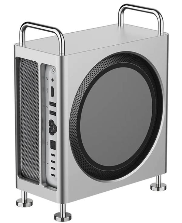I ran across this CNC machined enclosure made by Zeera for the Mac Studio, they also have one for the Mac Mini. It is expensive, but I like it. It is also available Black.